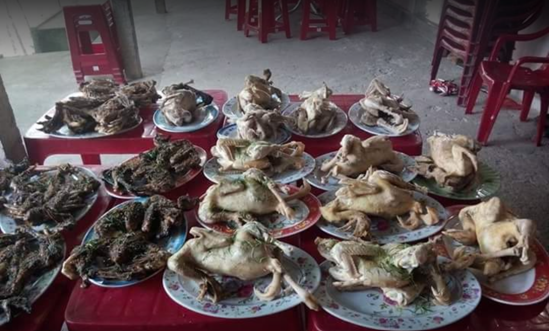 Bên cạnh đặc sản gà,ở quán còn các món được chế liến từ nguyên liệu theo mùa của địa phương như dế, sùng, ếch, ốc bưu…