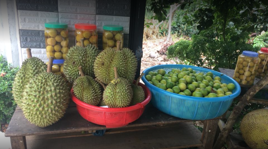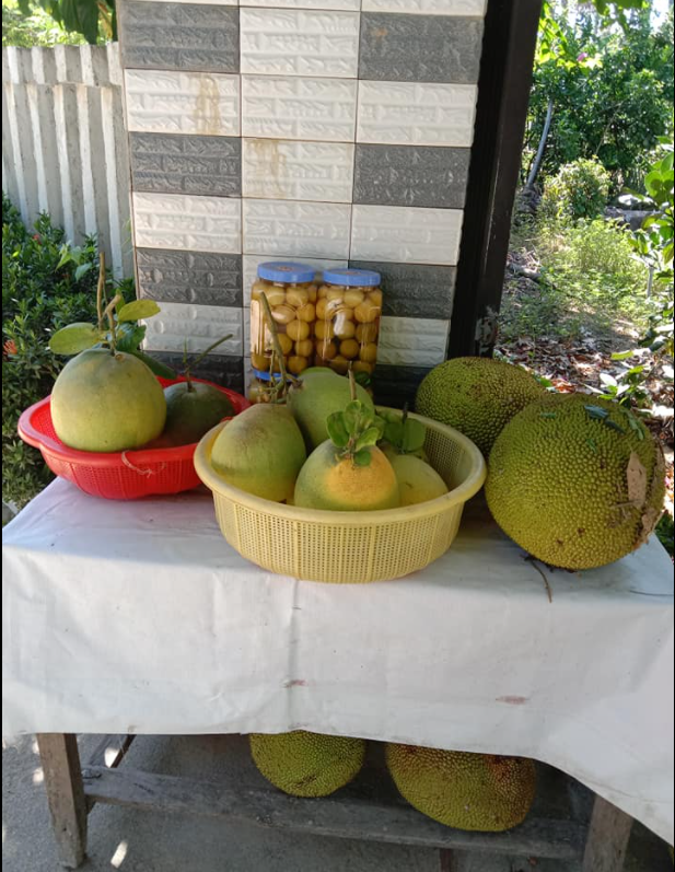 Phía bên kia đường trục chính, gia dình còn có một khu vườn rộng khoảng 3000 m2 được quy hoạch tỉ mỹ, trồng rất nhiều loại cây ăn quả từ cây bản địa đến các loại cây giống mói cho sản lượng và chất lượng cao.